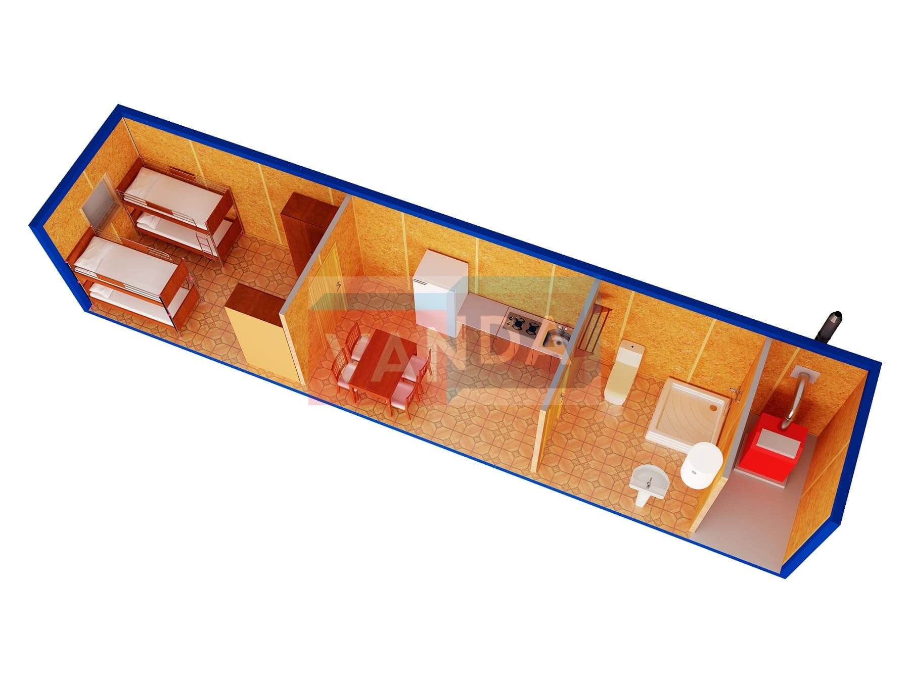 Проект вахтового посёлка 14.0х57,6 14x57.6 806.4 OSB 9 мм. Оцинкованный профлист 20 700 000 р. Уточняйте у менеджера